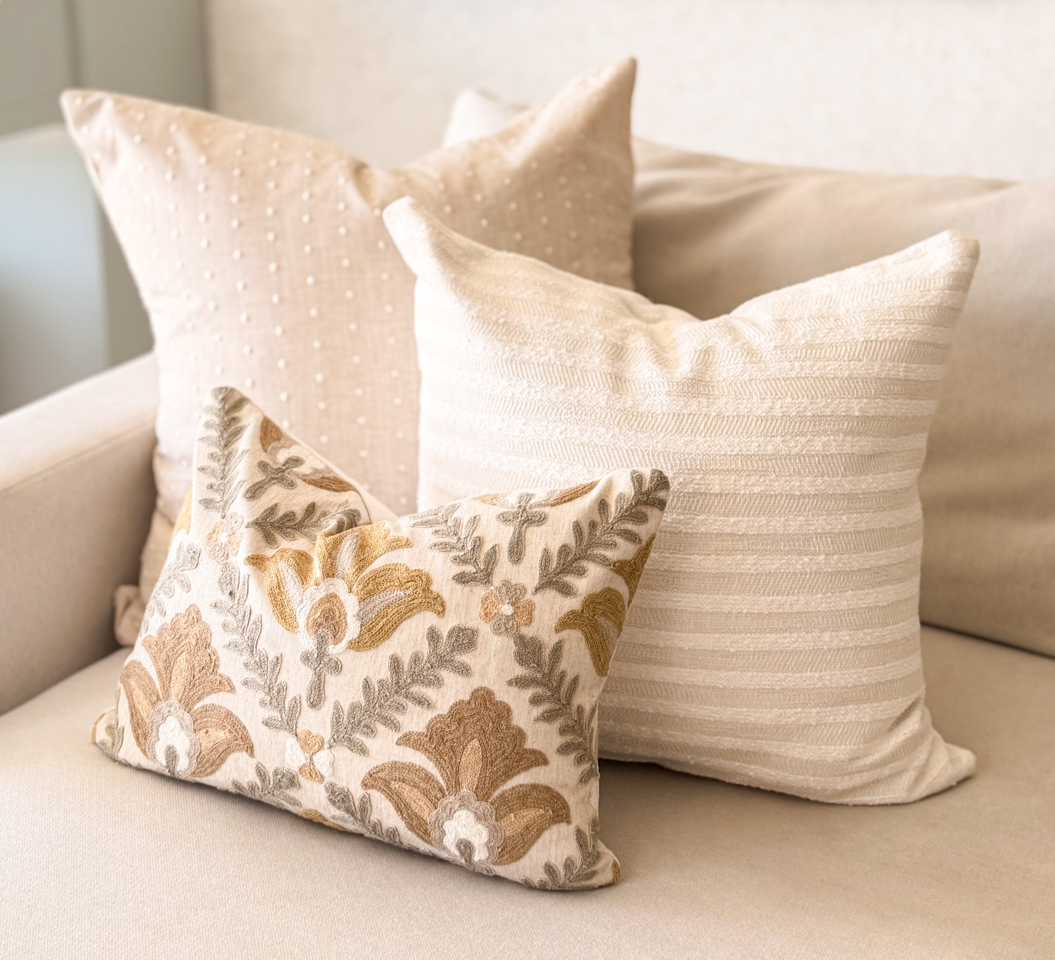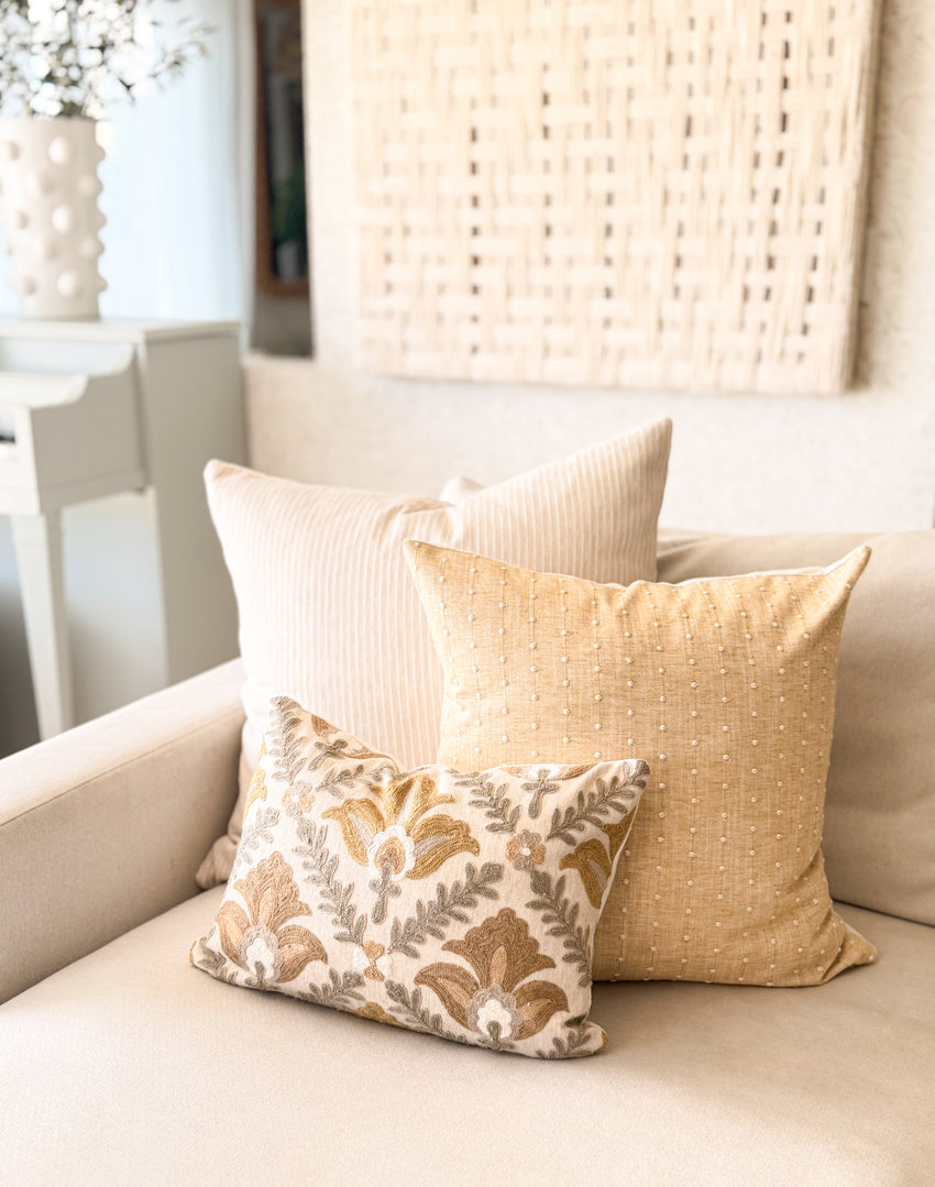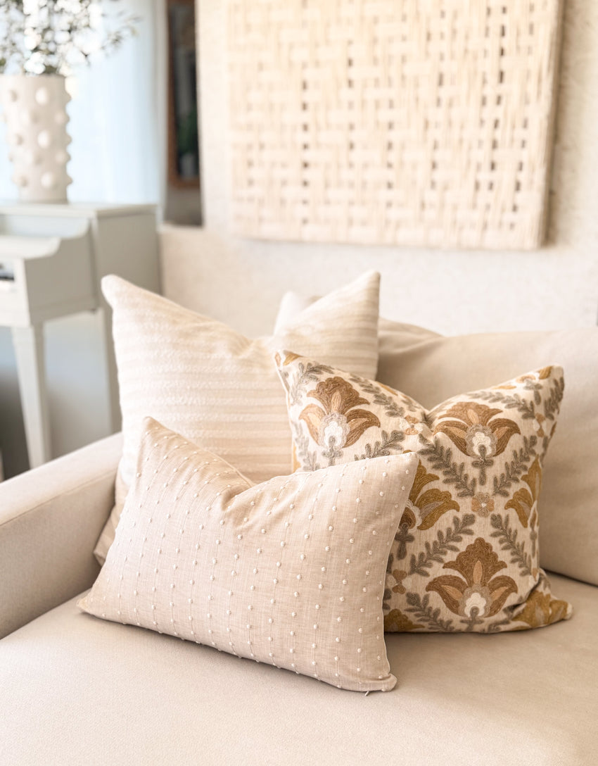 From intricate embroidery to soft woven textures, each pillow is crafted to bring depth and dimension to your space. Designed to layer effortlessly, creating a look that feels warm, lived-in, and beautiful.