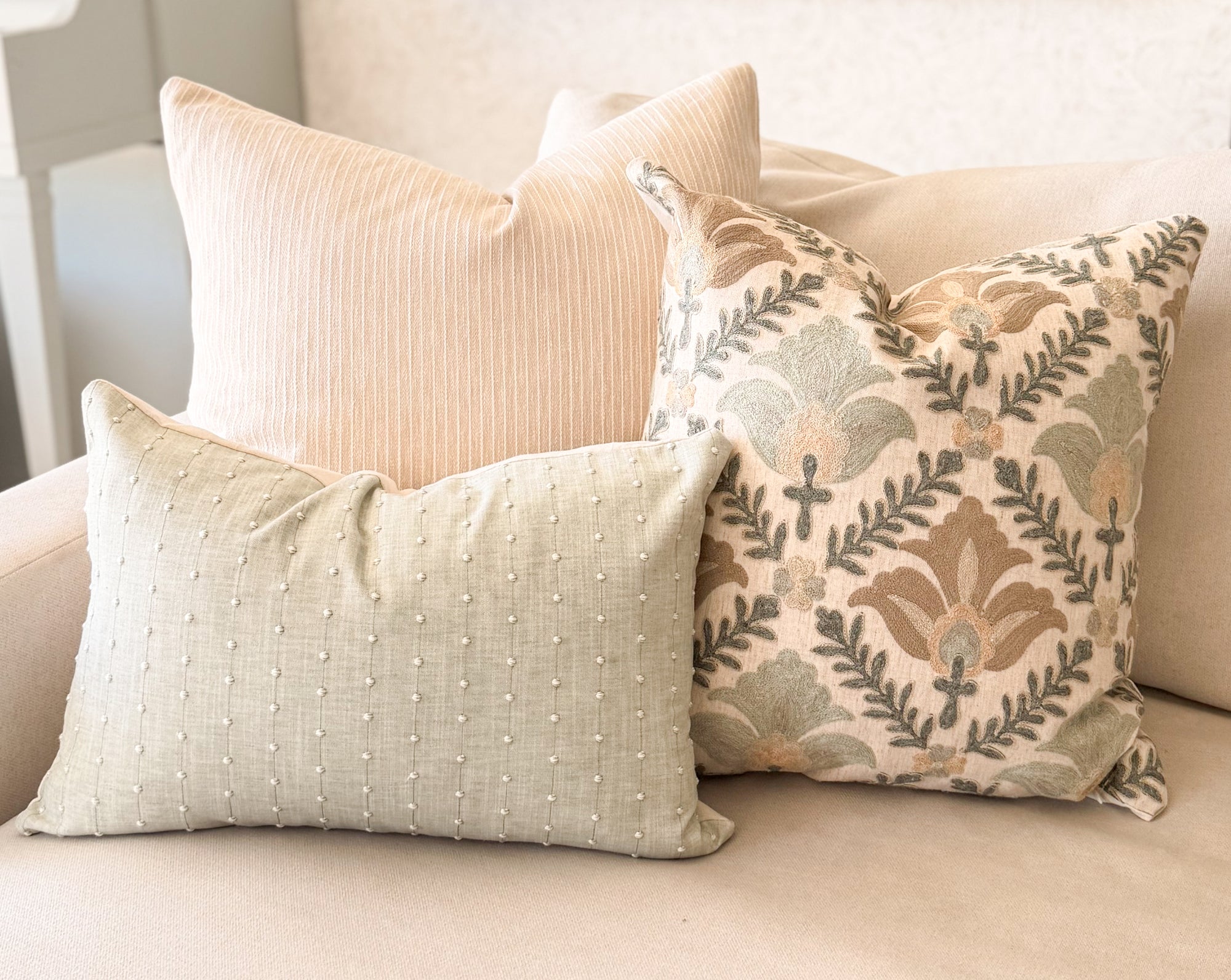 (1) 20" x 20" Montecito Crewel Pillow Cover – Mist