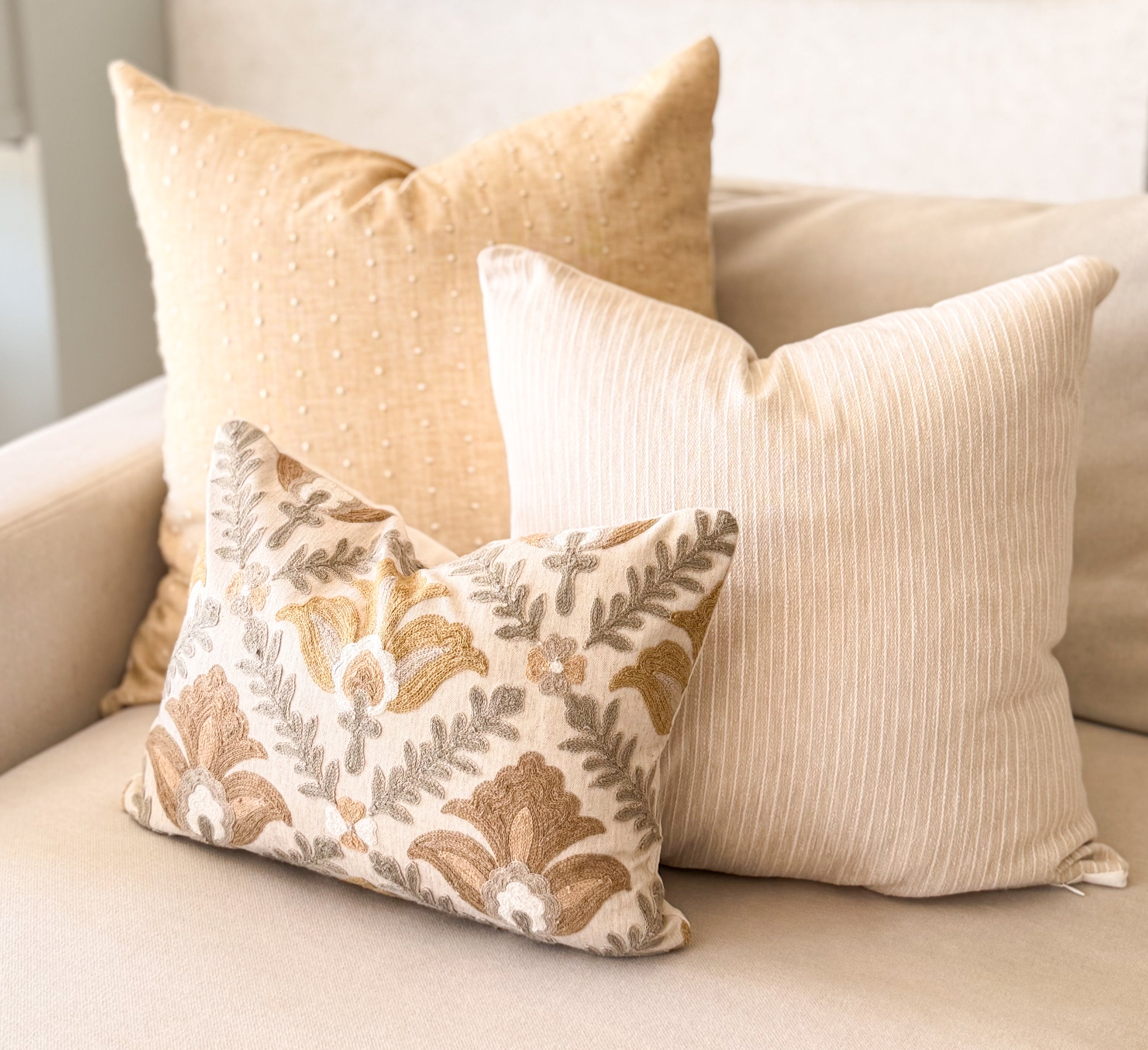 For a fuller look, we recommend sizing up for square pillows and using the same size insert for lumbars